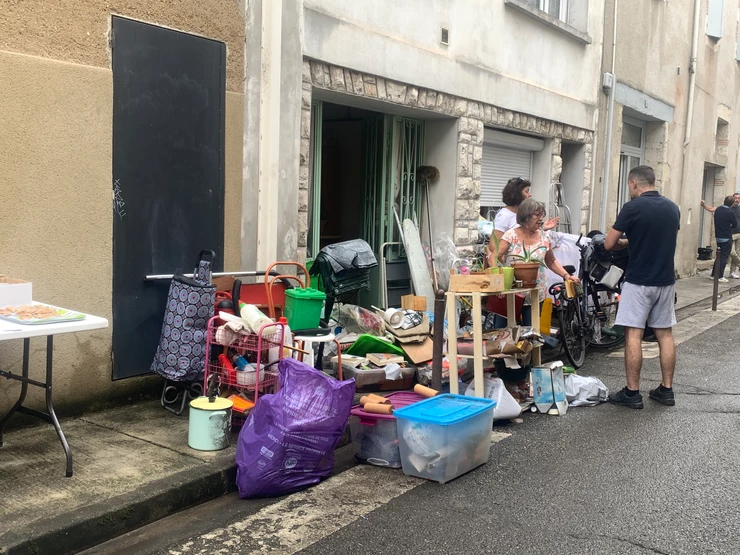 Toujours rue des Charretiers, les services de la Ville continuent de nettoyer la rue, et aident les habitant à vider tout ce qui a été abîmé par les inondations.