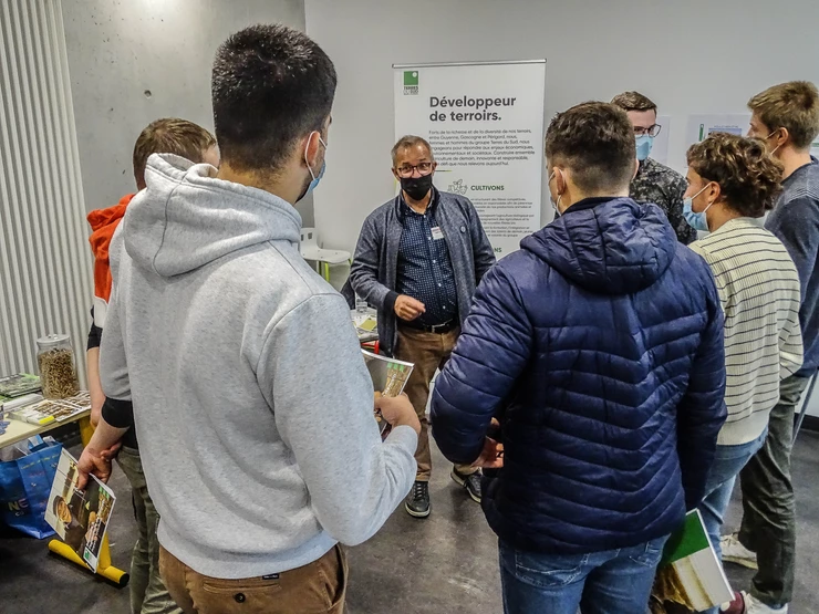 Jean Colas (au centre), directeur des opérations chez Terres du Sud, présente les opportunités de filières aux porteurs de projet agricole