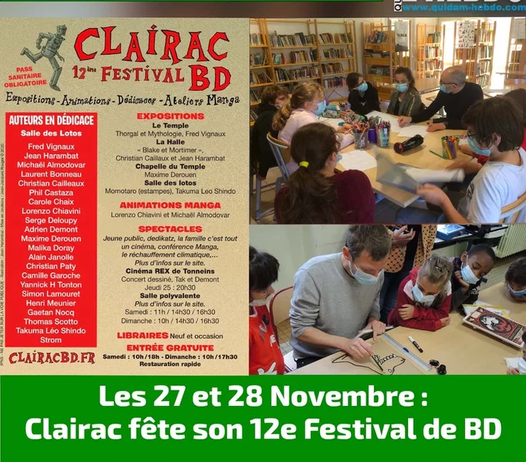 Les jeunes pourront aussi s’essayer au Manga lors d’ateliers, animés par Lorenzo Chiavin, qui transmet son expérience en enseignant tant à la Cité internationale de la bande dessinée, auprès du jeune public, que dans des écoles post-bac qui préparent aux métiers du dessin, et Michaël Almodovar, scénariste et professeur de narration graphique et manga dans différentes écoles – dont l’Institut ANATEN dans les Hautes Pyrénées qu’il a aidé à fonder. Enfin six spectacles dessinés se dérouleront samedi 27 et dimanche 28 novembre à la salle polyvalente. Dès jeudi au cinéma Rex de Tonneins, le public pourra assister à un concert dessiné, avant de poursuivre ce week-end avec une lecture dessinée et musicale ou encore avec une rencontre entre une bande dessinée et la musique. Toutes ces représentations mêleront le dessin et des thèmes aussi variés que la famille ou le réchauffement climatique. Dedikatz proposera même de remporter une illustration dédicacée. La manifestation et les activités sont totalement gratuites et accessibles sur présentation du pass sanitaire.