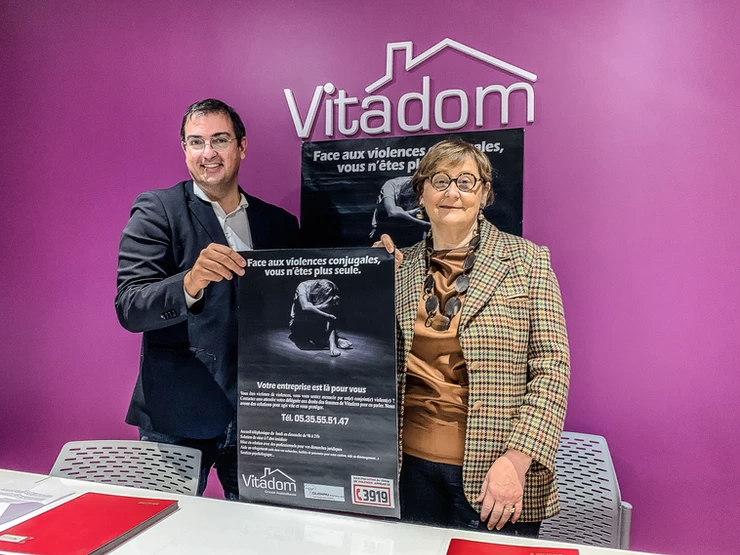 Outre les acteurs institutionnels, les entreprises ont aussi leur rôle à jouer dans ce combat de tous les jours. Pour Nicolas Baret, fondateur de Vitadom, entreprise de services à la personne, impossible de rester les bras croisés. « C’est un chiffre qui m’a terrifié et poussé à avoir le déclic. Tous les trois jours en France, une femme meurt sous les coups de son conjoint… Notre entreprise vise à aider un public vulnérable, des jeunes enfants aux personnes âgées en passant par les handicapés. Œuvrer pour les plus fragiles ne doit pas s’arrêter à nos bénéficiaires ! 90% de nos collaborateurs sont des femmes. Nous ne pouvons pas rester là sans rien faire », lance-t-il. Une cellule d’écoute, de prévention et mier, directrice générale de tions de travail et droit des tionnels, les entreprises d’action a donc été mise en Ciliopée Initiatives. Tous les femmes a dont été créée au ont aussi leur rôle à jouer dans ce combat de tous les jours. Pour Nicolas Baret, fondateur de Vitadom, entreprise de services à la personne, impossible de rester les bras croisés. « C’est un chiffre qui m’a terrifié et poussé à avoir le déclic. Tous les trois jours en France, une femme meurt sous les coups de son conjoint… Notre entreprise vise à aider un public vulnérable, des jeunes enfants aux personnes âgées en passant par les handicapés. Œuvrer pour les plus fragiles ne doit pas s’arrêter à nos bénéficiaires ! 90% de nos collaborateurs sont des femmes. Nous ne pouvons pas rester là sans rien faire », lance-t-il. Une cellule place, résultat d’un investissement acharné de toute l’entreprise, et d’un partenariat avec l’association Ciliohpaj (groupe Ciliopée), proposant des hébergements ou logements accompagnés, et le réseau d’entrepreneurs Medef 47. Un numéro interne à Vitadom a été mis en place de 9h à 21h du lundi au dimanche. En dehors de ces horaires, une astreinte générale alerte l’association Ciliohpaj pour une mise à l’abri d’urgence ou un accompagnement juridique par exemple. « Cela fait 21 ans que nous existons, nous avons donc le réseau nécessaire pour trouver une solution dans les plus brefs délais », ajoute Muriel Boulmier, directrice générale de Ciliopée Initiatives. Tous les salariés ont été informés de sa mise en place, grâce à une carte remise à chacun et un affichage dans les salles de pause.