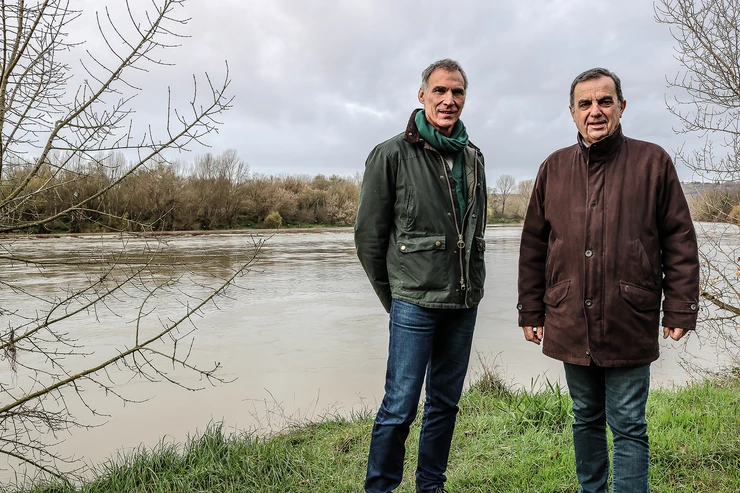 Michel Malet (à gauche), directeur territoire Garonne à la Saur, et Pierre Delouvrié, maire de Saint-Hilaire-de-Lusignan et vice-président de l’Agglo en charge de l’eau/assainissement, devant l’endroit déterminé pour accueillir la fameuse hydrolienne.