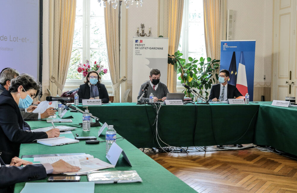 Faute, pour beaucoup, d’avoir pu tenir des traditionnelles cérémonies de voeux, permettant de faire le bilan sur l’année écoulée et les travaux à venir, c’est à travers un rendez-vous commun que Jean-Noël Chavanne, préfet de Lot-et-Garonne, a réuni les principaux services d’Etat pour faire le point sur les actualités de chacun. Ce-dernier a souhaité, à partir de la communication traditionnelle conjointe avec la procureure de la République, Manuella Garnier, et les forces de sécurité intérieure, donner les résultats de l’ensemble des services ainsi qu’un panorama des dossiers en avenir. Au cours de l’année 2021, de nouveau marquée par une crise sanitaire impactante à tout niveau, « l’Etat s’est adapté pour être résilient, toujours plus au service de nos concitoyens, des collectivités et des territoires », selon le préfet. Pour débuter ce tour de table, petit point sur les chiffres liés à l’emploi dans le département, avec une évolution qui pousse à l’optimisme, même si moins positive que la tendance régionale et nationale. Sur le dernier trimestre 2021, le nombre de demandeurs d’emploi était en baisse de 4,5% (-720 personnes) par rapport au trimestre précédent. Sur l’année, on constate 8,7% de chômeurs en moins. A noter, les dispositifs déployés par Pôle emploi ont permis une évolution à la baisse pour les plus de 50 ans, les bénéficiaires du RSA et les demandeurs d’emploi de longue durée. « Pour les jeunes, ces résultats sont à mettre en lien avec le dispositif un jeune, une solution, lancé en juillet 2020. Depuis son lancement, 10 000 jeunes lot-et-garonnais âgés de 16 à 30 ans ont trouvé un emploi », assure Frédérique Henrion, directrice de la Direction départementale de l’emploi, du travail, des solidarités et de la protection des populations (DDETSPP). Concernant l’activité partielle, qui a explosé depuis le premier confinement, près de 72 millions d’euros ont été versés au titre de demandes d’indemnisation entre mars et décembre 2020. Pour l’année suivante, marquée par une reprise progressive de l’économie, 19 millions d’euros ont été mobilisés.