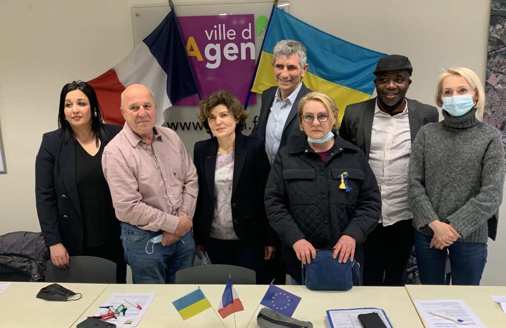 Pour aller plus loin, la municipalité a annoncé cet après-midi la mise en place de mesures pour organiser la solidarité à Agen. « Quand il y a une crise comme celle-ci, les symboles comptent. Petit à petit, la ville va se pavoiser aux couleurs de l’Ukraine, que ce soit à travers des drapeaux mais aussi des éclairages sur les façades », déclare Jean Dionis du Séjour. Plus important encore, le 14 mars, le Conseil municipal prendra une délibération importante en se portant officiellement candidate pour accueillir des familles d’Ukrainiens, « un geste qui s’inscrit dans la tradition agenaise » comme cela avait déjà été fait pour des réfugiés afghans et syriens. « Après discussions avec certains acteurs locaux, Agen Habitat est en train de répertorier des appartements pour les mettre à disposition. Il faut se préparer, et vite, puisque les premières arrivées devraient se faire rapidement. Avec 2 500 km à parcourir, le trajet peut se faire en quelques jours pour les personnes véhiculées », assure le premier édile. Ce dernier incite également les habitants qui ont un logement de disponible ou qui sont prêts à recevoir des familles chez eux, à se faire connaître auprès de la mairie pour être recensés.