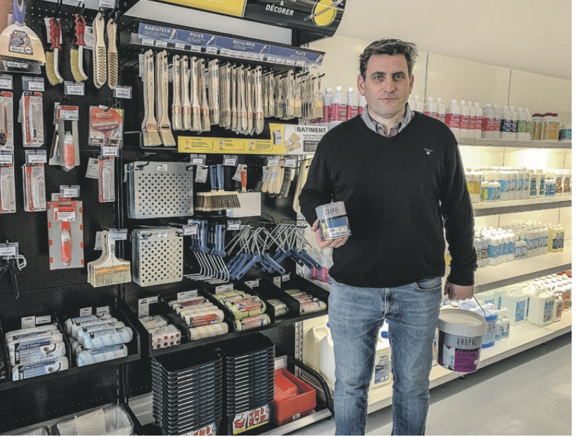 L’odeur de peinture fraîche est encore perceptible tandis que certaines étagères restent encore à remplir, mais Sébastien n’a pas attendu plus longtemps. Et les premières visites le confortent dans l’idée qu’il a pris la bonne décision. « J’ai déjà tout ce qu’il faut sur la partie peinture et droguerie, tandis que la gamme va s’étoffer petit à petit, avec déjà trois nouveaux fabricants à retrouver rapidement, comme Orac et ses divers revêtements muraux. » Côté peinture industrielle et décorative pour toutes les surfaces, il s’appuie cependant sur une seule et même marque, des produits de qualité et écologiques pour répondre aux problématiques environnementales. Les mélanges de couleur peuvent être réalisés sur place, grâce à un appareil dédié. « J’ajouterai une gamme bio également, pour pousser la démarche », ajoute-t-il. Des revêtements de sol réputés pour leur résistance de la marque Floorify sont aussi proposés, tandis qu’une partie outillage, avec la marque Peugeot, pourra être mise à disposition à la location. Sébastien a voulu par son emplacement favoriser la proximité et le conseil avec ses clients, capable de mettre à disposition son réseau dans le milieu au besoin. « Pour la suite, je souhaite mettre en place des ateliers dispensés par les fabricants partenaires dans un espace dédié. » Une offre évolutive donc, qui devrait ravir les habitants du coin.
