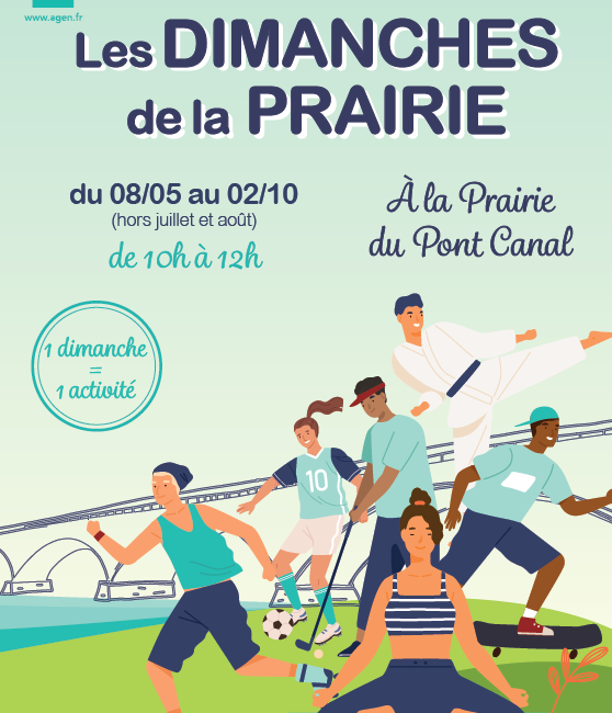 En ce début de période estivale, un nouvel évènement s’ajoute dans le calendrier des Agenais passionnés de sport, ou simplement curieux de découvrir de nouvelles disciplines. Les Dimanches de la Prairie, lancés l’an passé, se dérouleront sur la prairie du skatepark-pont canal dès ce dimanche 8 mai, et ce jusqu’à l’automne. L’objectif de ces journées, inciter à la pratique et à l’initiation d’un sport ou d’une activité en plein air. Cette année, les disciplines sont plus variées les unes que les autres : le golf, le skateboard, le BMX, le tir à l’arc ou encore l’aérobic seront notamment de la partie. À l’occasion de cette deuxième édition, de nouvelles disciplines font leur apparition comme le foot-golf, le hip-hop, le body-karaté et le roller-hockey. Le tout complètement gratuit Le rendez-vous est donné de 10h à 12h du 8 mai au 3 juillet, avant une pause estivale pour revenir du 4 septembre au 2 octobre. Ce dernier dimanche, à l’occasion d’Octobre rose, la Mairie organisera en partenariat avec le Comité Action Cancer 47 la « Prairie Rose ». Les participants auront l’opportunité de discuter avec des professionnels, participer à des ateliers sur le sujet ainsi qu’à des activités sportives.