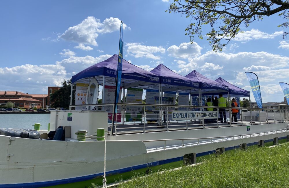 À bord de sa péniche Naïade, fournie par Voies Navigables de France, Expédition 7e continent et l’entreprise de recyclage Citeo font escale au port d’Agen dans le cadre de leur 5e tournée pédagogique « protéger l’océan ça s’apprend ». Habituellement sur les côtes à bord de leur propre voilier, la tournée se fait pour la première fois en plein cœur du Sud-Ouest. L’ONG spécialisée dans les expéditions en pleine mer, a jeté l’ancre au port d’Agen le 5 mai pour trois jours avant de repartir en direction de Valence d’Agen. Durant sa tournée, les écoles participent en semaine à des animations ludiques et pédagogiques autour du recyclage et de l’impact des déchets dans les océans, et les week-ends, la péniche est accessible au grand public gratuitement pour ceux qui souhaiteraient en savoir plus. « Nous proposons plusieurs ateliers pour les enfants de 7 à 14 ans, qui conviennent aussi très bien aux adultes. Un atelier constat pour pouvoir expliquer la situation actuelle des océans, un atelier recyclage avec une grande roue qui se déroule comme un jeu et un atelier débat, échanges pour communiquer tous ensemble », détaille Patrick Deixonne, navigateur, explorateur et fondateur d’Expédition 7e continent.