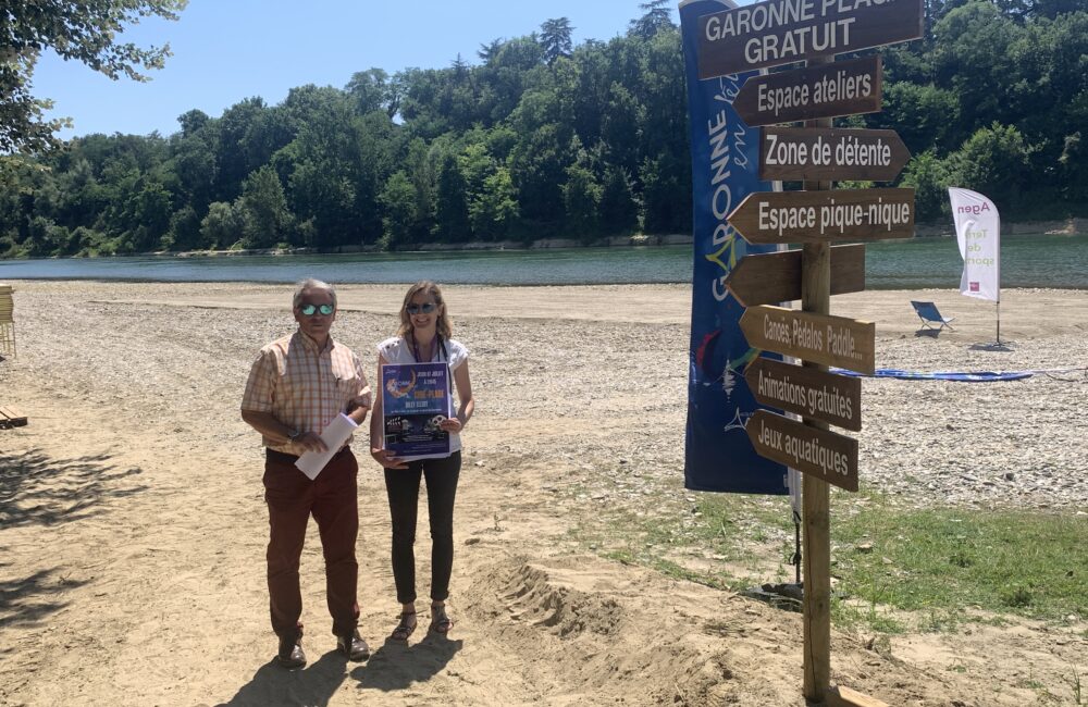 C’est un rendez-vous très attendu des Agenais, pour profiter d’un petit bout de plage et se rafraîchir alors que les températures très élevées recommencent à frapper le département. Après des analyses effectuées pour vérifier la qualité de l’eau, le feu vert a été donné pour le lancement de Garonne plage, installée à Boé en face du parc naturel de Passeligne. Elle est de retour depuis le 7 juillet, et restera en place jusqu’au 31 août, ouverte au public tous les après-midi. Des dates prolongées en raison du succès et de la belle fréquentation les années précédentes. Pour rappel, cette baignade a été initiée lors de la première édition de Garonne en fête en 2017, et ne durait à l’époque qu’une seule journée. Petit à petit, la période a été rallongée pour arriver à près de deux mois cette année. De quoi permettre à toute la famille de bénéficier d’un espace de baignade surveillé par des maîtres-nageurs et de multiples activités gratuites sur la Garonne : structures gonflables dans l’eau (deux zones pour séparer petits et grands), canoës, pédalos, paddle, bateaux pour les tout-petits mais aussi terrains de sport, en plus des transats et parasols à disposition. Sur place, une buvette sera ouverte uniquement les week-ends tandis qu’un espace pique-nique reste constamment à disposition des visiteurs qui souhaitent passer la journée sur le site, entre particuliers et centres de loisirs qui apprécient y amener les jeunes.