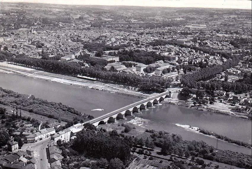 Jusqu’à l’inauguration du pont de pierre en 1827, il semblerait qu’il n’y ait jamais véritablement eu de pont sur la Garonne en Agenais. Dès 1189, Richard Cœur de Lion, roi d’Angleterre et duc d’Aquitaine, publiait pourtant un décret qui « accorde et confirme que le pont d’Agen soit libre et exempt de passage, pontage, de toute exaction et coutume. » Un acte fondateur mais qui ne sera pas suivi d’effet. Une telle construction demandait une somme considérable, difficile à rassembler. À la fi n du XIVe siècle, un pont en pierre et en bois fut construit, au niveau de l’actuelle passerelle. Il ne permit que le passage des piétons et ne résista pas à une grande inondation, en 1435. « Nous avons peine à nous rendre compte des difficultés que le défaut de pont ont dû créer pendant de longs siècles aux habitants d’Agen », commentait en 1878 l’historien Georges Tholin, membre de l’Académie des Sciences, Lettres et Arts d’Agen, dans la Revue de l’Agenais.