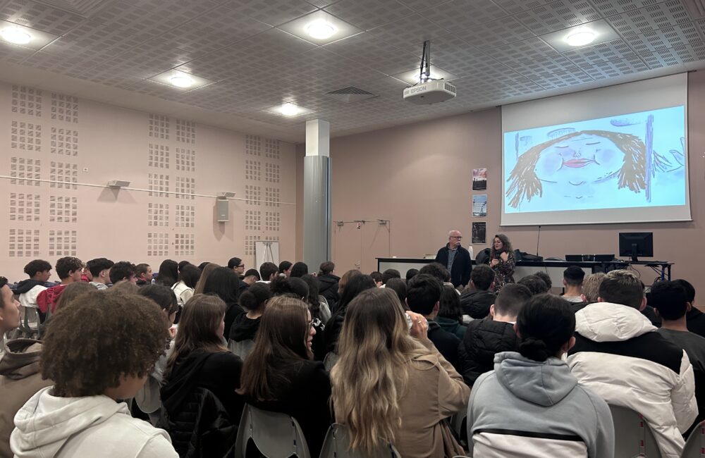 Le silence se fait dans la salle, la projection du court-métrage « Folie Dure Folie douce » va commencer. Depuis 5 ans, un atelier de programmation de courts-métrages intègre une à deux classes de seconde du lycée Jean-Baptiste de Baudre dans le but d’intéresser les élèves parallèlement aux enseignements plus classiques, mais aussi de les raccrocher à des éléments culturels et à l’analyse de la vie quotidienne dans le monde d’aujourd’hui. Voir un film, parler du film, parler de soi aussi et avancer dans sa propre problématique personnelle de jeune avec un objectif : donner du sens pour aider à progresser.Dans le cadre de cet atelier, prenant place sur les heures d’accompagnement personnalisé, les élèves ont ainsi pu rencontrer Marine Laclotte, une réalisatrice césarisée en 2021 pour son court-métrage « Folies douces folies dures », une plongée dans le quotidien de plusieurs institutions psychiatriques, qui dévoilent ces personnalités souvent cachées au grand public à travers un court-métrage d’animation.