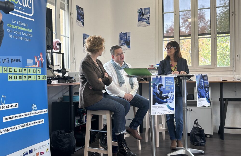 « Aujourd’hui en France entre 13 et 14 millions de personnes sont éloignées du numérique et souffre d’illectronisme qui entraîne des inégalités sociales » a débuté en préambule la présidente du Conseil Départemental, Sophie Borderie, accompagnée de Laurent Capelle, successeur de Pierre Camani en charge du numérique et Juliette Béregui, directrice de cabinet du préfet de Lot-et-Garonne.