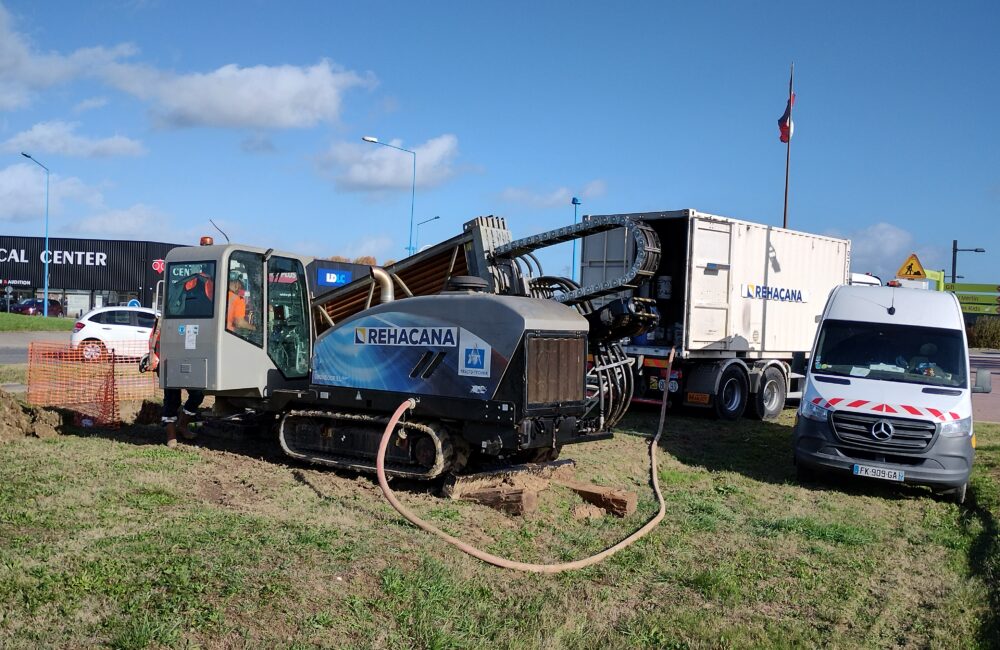 Les travaux de la future station BioGNV (la version renouvelable du Gaz Naturel Véhicule) de Boé ont démarré. Rendez-vous été donné jeudi 16 novembre pour début du chantier de forage de la future station chapeauté par GRDF, Territoire d’Energie 47 et la SEM Avergies. La société Rehacana, missionnée par GRDF, met en place une technique innovante pour des travaux moins impactants pour les riverains et en toute sécurité : le forage dirigé. Le forage dirigé est une technique qui permet de poser une canalisation sans creuser de tranchées. Cette technique permet de limiter les perturbations liées au chantier, en évitant divers obstacles tels que habitations, voies de roulement, équipement de surface, etc. Seul le terrassement d’un puit d’entrée et d’un puit de sortie est nécessaire pour installer le réseau de canalisations. En évitant la réalisation de tranchées, l’infrastructure est préservée au maximum et en termes de prévention, cette technique limite le risque d’ensevelissement ou de chute.
