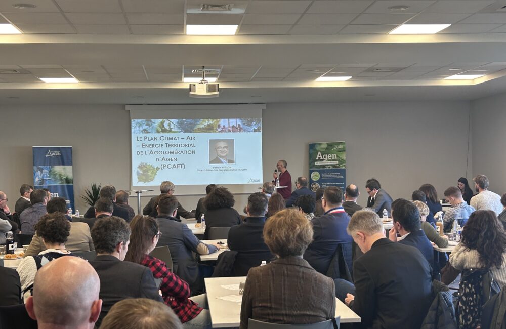 L’engagement, voilà ce qui motive l’Agglomération d’Agen dans son virage vert. Lors du premier petit déjeuner de l’éco 2024, l’Agglomération d’Agen a dévoilé, devant les entreprises participantes, le fil conducteur de l’année en cours, l’économie circulaire, et les objectifs verts fixés via le plan PCAET. Mais, qu’est-ce que c’est ?La conception du plan climat-air-énergie territorial (PCAET) est une obligation pour toute collectivité comme l’Agglo. Ce plan définit, sur le territoire donné, les objectifs stratégiques et opérationnels de cette collectivité en vue d’atténuer le changement climatique, de le combattre efficacement et de s’y adapter. Il comprend également un programme d’actions visant à améliorer l’efficacité énergétique, à augmenter la production d’énergies renouvelables, à valoriser le potentiel en énergie de récupération, à favoriser la biodiversité pour adapter le territoire au changement climatique, à limiter les émissions de gaz à effet de serre, à anticiper les impacts du changement climatique, ainsi que des volets spécifiques à la maîtrise de la consommation énergétique de l’éclairage public et de ses nuisances lumineuses.