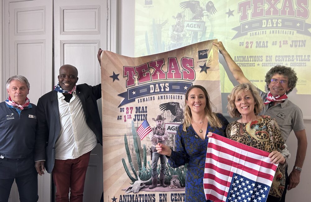 Agen se met à l’heure américaine ! Après les folies vocales qui vont rythmer cette semaine, les Agenais vont voyager jusqu’au Texas et à la ville jumelle de Corpus Christi pour la dernière semaine de mai. Les « Texas Days » se tiendront du 27 mai au 1er juin et transformeront pendant quelques jours la cité préfecture en porte-étendard de la bannière étoilée américaine. Jumelée avec la cité texane depuis 1999, la Ville d’Agen n’avait jamais encore réalisé d’événement de cette ampleur, souligne Jean-Marie N’Kollo, adjoint en charge des jumelages à la mairie d’Agen. « Nous voulons faire connaître ce jumelage, la ville et le Texas aux Agenais », explique Clémence Brandolin-Robert, première adjointe. « Cela va permettre de valoriser ce jumelage qui n’est pas nécessairement bien connu. Cela permet aussi de s’ouvrir l’esprit, connaître un état pour lequel on peut avoir des préjugés. »