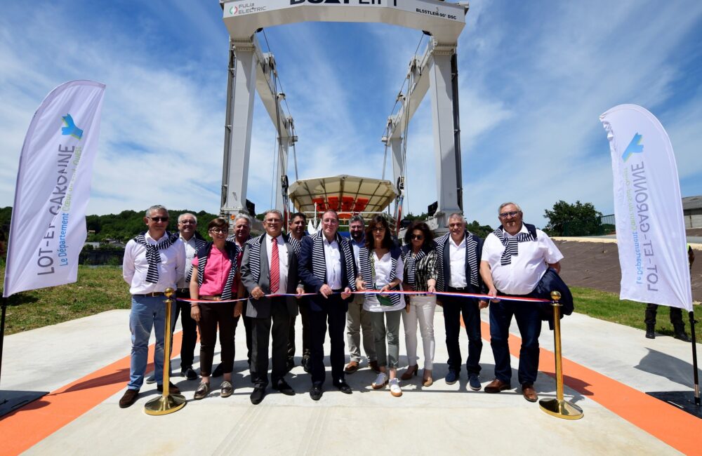 Le transbordeur de Fumel, mis en service officiellement le 13 juin, permettra aux bateaux de franchir le barrage hydroélectrique de Fumel. Cet équipement a été conçu pour soulever les embarcations et les transporter sur une distance de 300 mètres, avant de les remettre à l’eau en aval du barrage, six mètres plus bas. Cette prouesse technique a été saluée par de nombreux spectateurs, dont Sophie Borderie, présidente du Conseil départemental de Lot-et-Garonne, son homologue lotois, Serge Rigal.