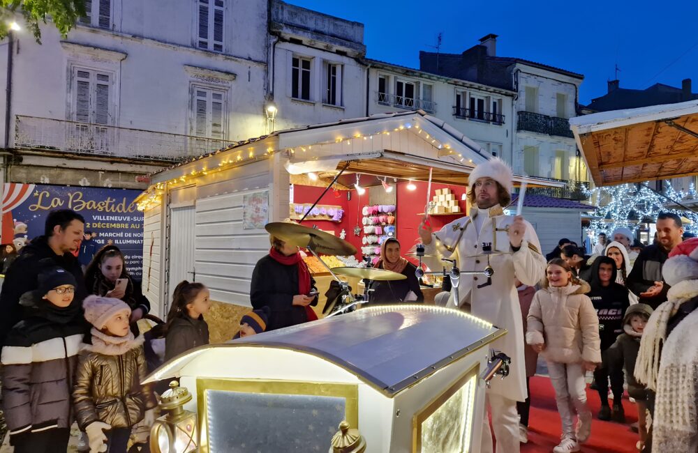 Le marché de Noël, rue Lakanal et place Lafayette, accueillera ses visiteurs du 7 au 31 décembre, avec des horaires élargis pendant les vacances scolaires. Entre chalets en bois, créations artisanales et gourmandises sucrées ou salées, c’est un lieu idéal pour dénicher des cadeaux uniques ou se réchauffer avec un chocolat chaud. Deux nocturnes, les 21 et 28 décembre, prolongeront l’expérience jusqu’à 21h. Des animations féeriques pour petits et grands Les rues de Villeneuve-sur-Lot s’animeront avec des déambulations de compagnies artistiques et des spectacles enchanteurs : Les Fanfarfadets, les 7 et 8 décembre, ouvriront le bal ; la chanteuse Carol of the Belles, les 23 et 24 décembre, apportera une touche musicale ; les Batupagaï, une batucada pleine d’énergie, clôtureront les festivités les 4 et 5 janvier. Petits et grands pourront aussi admirer la Grande Parade de Noël le 7 décembre à 18h et le spectaculaire feu d’artifice pyrosymphonique le 21 décembre au parc Saint-Cyr.