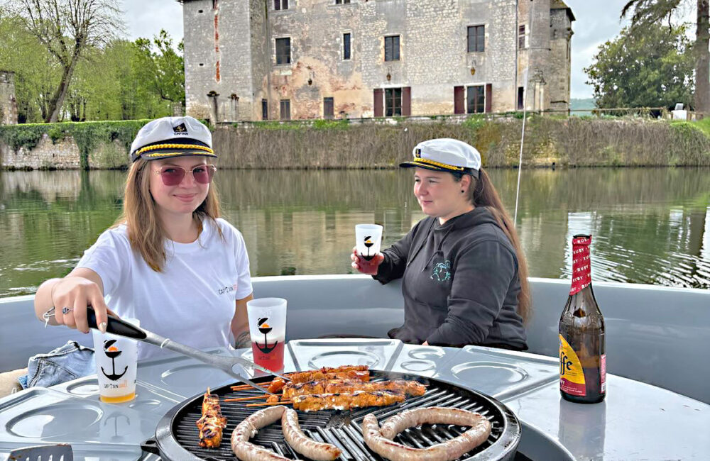 Du ciel bleu sous le soleil, une petite escapade en bateau et un bon gueuleton bercé par le doux parfum des grillades… Vous en réviez ? Hugo Martin l’a fait ! Le jeune homme de 27 ans s’est lancé dans un projet original baptisé Captain Grill, réunissant deux activités qui vont très bien ensemble : la plaisance et la cuisine. Le principe est aussi simple qu’original. « J’ai toujours aimé les activités nautiques, indique l’entrepreneur. Je suis tombé sur ce concept un peu par hasard et j’ai tout de suite été séduit. Je me suis bien renseigné et j’ai décidé de foncer. » Hugo a investi plus de 60 000 euros pour se constituer une première flotte de deux bateaux à la motorisation électrique et accessibles sans permis. Les embarcations interpellent avec leur forme ronde qui se prête particulièrement à l’exercice du repas partagé. Tous les occupants, confortablement installés, se font face autour d’une grande tablée. Et au centre, un barbecue. Pour des raisons évidentes de praticité et de sécurité, le brasier est alimenté par le gaz. « Chacun est libre d’amener ce qu’il veut pour se faire plaisir. Il est également possible d’arriver les mains dans les poches et de mettre les pieds sous la table puisque je propose des menus tout inclus avec de bons produits de la boucherie de Saint-Sylvestre, des bières de la brasserie Zebull’in… C’est important pour moi de travailler avec des artisans locaux », souligne Hugo, qui sollicite parfois des chefs privés pour des expériences encore plus prestigieuses. Plusieurs formules sont déclinées, dont une orientée petit déj’ – brunch, pour passer 2 à 4 heures sur le magnifi que plan d’eau off ert par le Lot. « En tant qu’Agenais, j’aurais pu choisir de m’installer sur le canal. Mais on n’a pas le même espace ni la même tranquillité qu’ici. J’ai toujours aimé ce coin de Lot-et-Garonne, avec les Plus beaux villages de France tout autour. Le potentiel touristique est assez dingue », note le « Captain ». Côté tarif, les prestations s’échelonnent de 120€ à 300€, en fonction de la durée et du nombre d’occupants qui peut atteindre une petite dizaine. « Plus on est nombreux, plus le prix devient intéressant. Mais je tenais aussi à rester accessible pour les couples en demande d’une parenthèse romantique au fi l de l’eau. »