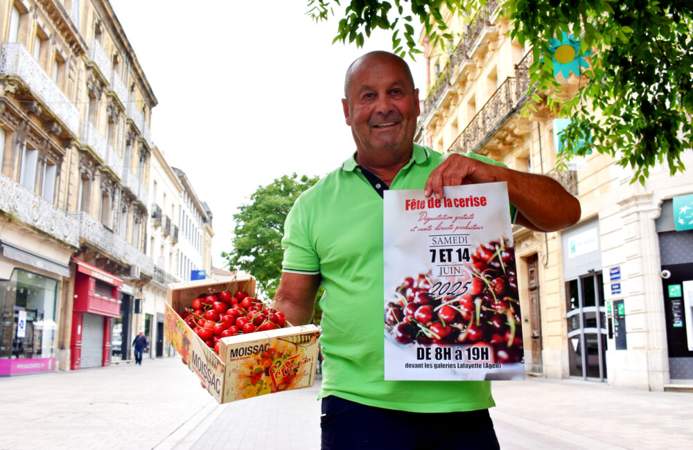 Sur le boulevard de la République à Agen, on les reconnaît de loin. Les cagettes de cerises s’alignent en rangs serrés, et le stand du producteur Vivian Derc est devenu un rendez-vous attendu à l’aube de la période estivale. « On a des habitués qui sont là à 7h30, caddie à la main, alors qu’on n’ouvre qu’à 8h », sourit celui qui est à la tête d’une exploitation familiale basée à Dunes, dans le Tarn-et-Garonne.