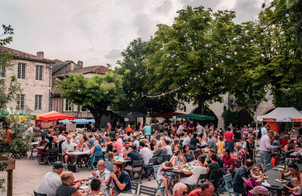 Fondée en 1256, Monfl anquin déploie son quadrillage parfait sur une colline qui semble avoir été dessinée pour elle. À la croisée de l’histoire et de la pierre blonde, la bastide expose sa place centrale bordée d’arcades, ses maisons nobles et ses passages couverts. On y circule comme dans un damier médiéval, chaque angle révélant une façade, une fontaine ou une échappée sur la campagne environnante. L’été, elle se transforme en décor vivant : marchés nocturnes, fêtes médiévales, artisans dans les venelles. Rien d’artifi ciel pourtant : Monflanquin cultive son authenticité sans folklore ni excès.