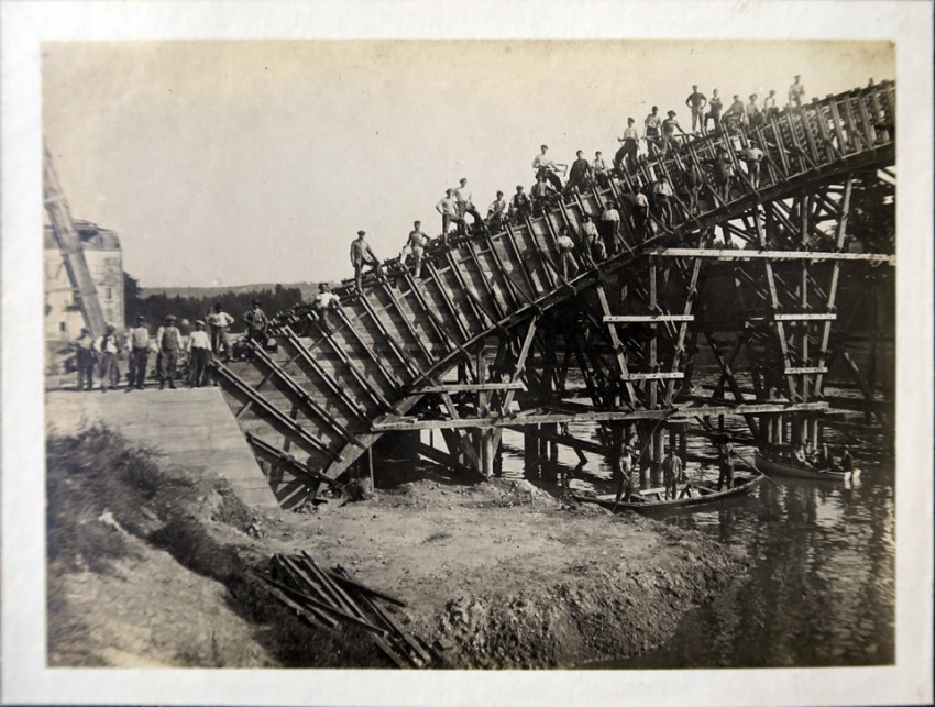 À Villeneuve-sur-Lot, l’essor urbain de la fin du XIXe siècle rend vite le vieux pont des Cieutats insuffisant pour répondre aux besoins croissants de circulation. Dès 1894, l’idée d’un second pont s’impose. Il faudra pourtant attendre près de deux décennies pour qu’elle prenne corps. En 1912, le projet audacieux de l’ingénieur Eugène Freyssinet est retenu : une arche unique de 100 mètres de portée, du jamais-vu à l’époque. Ce pont, qui deviendra le Pont de la Libération, est une prouesse architecturale autant qu’un symbole d’avant-garde. L’architecte y expérimente ce qui deviendra sa marque de fabrique : le béton précontraint, structuré par des câbles d’acier tendus, qui lui vaudra plus tard une renommée mondiale. Mais la guerre de 14-18 vient freiner l’ambitieux chantier, mené tant bien que mal par du personnel non mobilisé. Il faudra attendre 1923 pour que les tramways circulent sur l’ouvrage, dont une voie leur est dédiée jusqu’en 1935. Par son parement de brique et ses arcs en mitre, le pont s’inscrit aussi dans la mémoire médiévale de la ville, faisant le lien entre tradition architecturale et modernité technique.