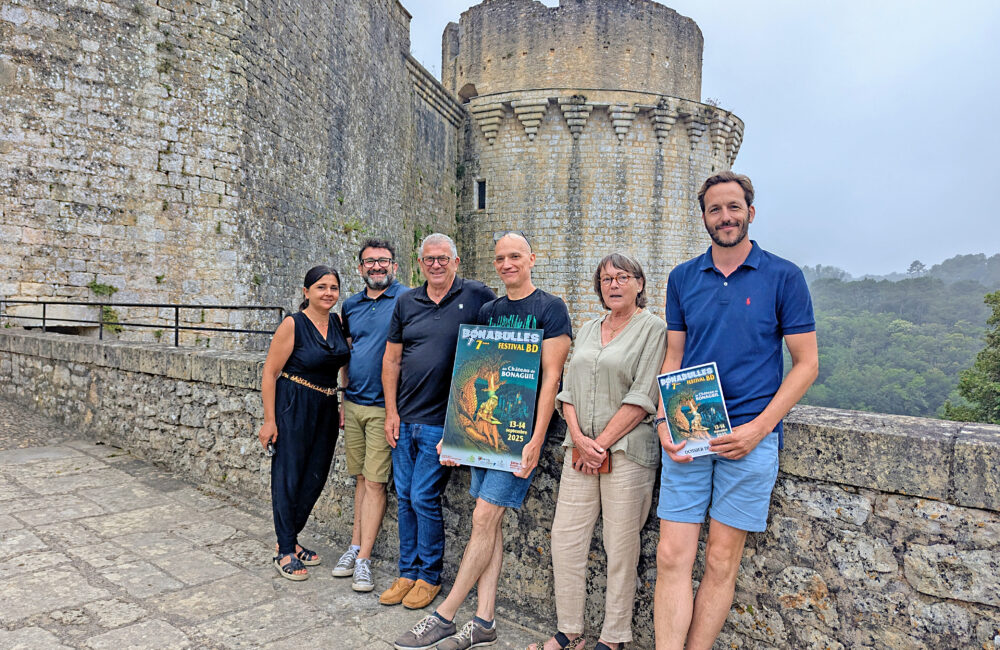 C’est devenu l’un des rendez-vous incontournables de l’année en Fumelois et même au-delà. Le festival de bande dessinée Bonabulles est un ovni dans le genre puisqu’il met en miroir le neuvième art avec un lieu unique. Certains diront que la visite du château est une formidable occasion de découvrir la créativité foisonnante du monde de la BD, d’autres que l’évènement culturel ouvre les portes de cette fabuleuse forteresse médiévale… Quoi qu’il en soit, cette cohabitation temporaire rend ces deux jours très spéciaux. Cette 7ème édition de Bonabulles est le résultat d’un travail de fond mené depuis sa création. Le dessinateur Christian Paty, cofondateur et organisateur de cette manifestation, explique cette longévité : « Les temps sont durs pour les festivals qui ont du mal à perdurer. Quand ça marche, et c’est le cas ici, c’est vraiment très encourageant. Il y a bien sûr la dimension exceptionnelle du site mais aussi l’accueil des auteurs. Tous ceux qui sont déjà venus ont envie de revenir parce qu’ils sont choyés. Comme on sait que rien n’est jamais acquis, on poursuit nos efforts, en pérennisant ce qui plaît et en ajoutant de nouveaux temps-forts. » Ce millésime 2025 tient toutes ses promesses, et ce dès l’affiche signée Béatrice Tillier, avec ses accents fantastiques. Le plateau d’une vingtaine d’auteurs associe des styles très différents et quelques indépendants. Quelques pointures connues et reconnues seront de la partie (Margerin, Crisse, Philippe Luguy), bien accompagnées par une jeune génération pleine de talent et de plus en plus féminine.