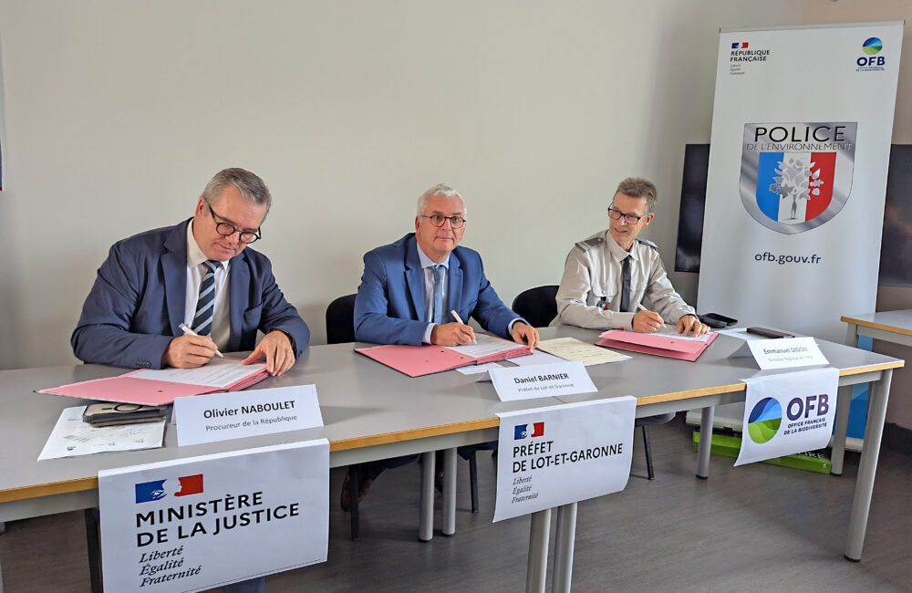 Dans un monde où le dérèglement climatique et ses effets s’accentuent, la protection de l’environnement devient un sujet de plus en plus prépondérant. Des enquêtes d’opinion montrent que 92% des Français souhaitent renforcer les actions en ce sens et 79% estiment que la police de l’environnement devrait procéder à plus de contrôles*. Cela tombe bien, c’est justement l’objectif de l’Office français de la biodiversité (OFB). L’organisme vient de signer un protocole tripartite avec la préfecture de Lot-et-Garonne et le service du procureur de la République d’Agen Olivier Naboulet.