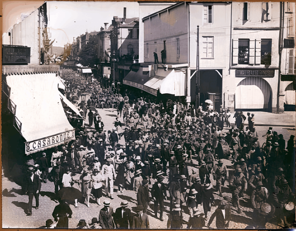 Alors que les poilus s’enlisent dans la boue de Champagne, la vie s’organise à l’arrière. Agen accueille, dès septembre 1914, plus de 1 600 blessés. Des comités de secours s’improvisent, les salles communales deviennent hôpitaux. Dans les campagnes, les chevaux sont réquisitionnés, les femmes remplacent les hommes aux champs, et les prix flambent. Les restrictions s’intensifient : sucre, pain, charbon, gaz, tout vient à manquer. Les pâtisseries ferment deux jours par semaine, le ramassage des ordures est limité, les soirées s’éclairent à la bougie. En 1917, trois jours sans viande sont imposés localement chaque semaine. Et pourtant, on chante encore la Marseillaise lors des fêtes patriotiques du 14 juillet, on collecte pour les blessés, on baptise la place du Grand Séminaire du nom de place Verdun. Le moral tient bon.