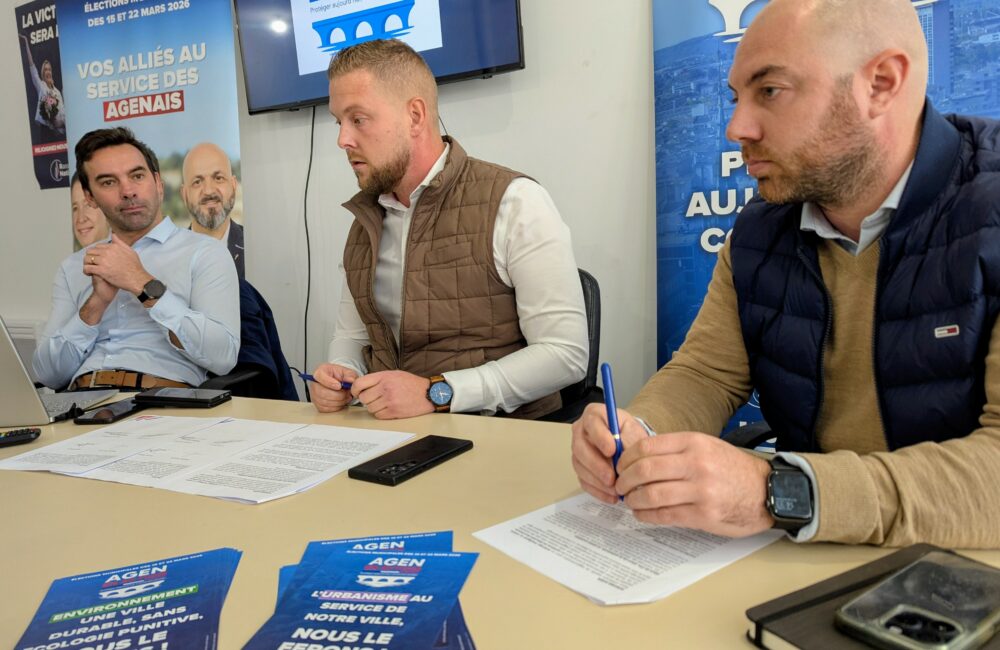 C’est désormais une habitude. Quand Sébastien Delbosq s’exprime sur un thème de campagne, il ne fait pas dans la demi-mesure. Après des propositions très ambitieuses sur le volet sécuritaire, sujet de prédilection du Rassemblement national qu’il représente et de l’UDR, il s’attaque cette fois à l’urbanisme avec la même approche. À cette occasion, le candidat à la mairie d’Agen a présenté deux nouveaux colistiers qui seront, en cas de victoire, respectivement adjoint et délégué à « l’urbanisme, la voirie et la ville durable ». Il s’agit de Nicolas Henry, 35 ans, et Sébastien Descomps, 39 ans. Ils ont tous les deux en commun d’être des professionnels de la construction et du bâtiment. Le premier, spécialisé dans le génie climatique, est aujourd’hui maître d’ouvrage et pilote à ce titre un parc immobilier de 80 000 m2, gère d’importants contrats énergétiques et conduit des opérations de travaux à sept chiffres. Sébastien Descomps officie lui comme maître d’œuvre à son compte sur des chantiers dans toute la France. Bien qu’encartés au RN, « ils ont été choisis pour leurs compétences et leur envie de travailler pour Agen, à l’image du reste de l’équipe », assure Sébastien Delbosq, confiant au passage que sa liste est d’ores et déjà complète.