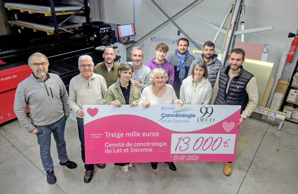 Julien Pascal, fondateur et gérant de 99 Déco, a décidé de pousser l’initiative un peu plus loin avec une contribution financière substantielle. « Je me suis dit que ce serait bien de donner 1% de notre chiffre d’affaires pour soutenir une belle cause », explique-t-il, inspiré par l’engagement associatif de son père. Sachant que la PME a clôturé ses deux derniers exercices à hauteur de 1,3 M€, le montant du chèque est vite calculé : 13 000 €. Et celui-ci est à l’ordre du Comité de cancérologie 47. La larme à l’œil au moment de le recevoir, la présidente Michèle Bauvy confiait n’en avoir « jamais reçu de si gros ». Le choix du bénéficiaire ne s’est évidemment pas fait au hasard. L’association a beaucoup compté pour Céline et Julien Mathou quand ils en avaient le plus besoin : « On est sortis de la consultation d’annonce complètement déboussolés. On a alors été très bien reçus par le Comité. On a été écoutés tous les deux, avec énormément de bienveillance, par des personnes extraordinaires. »