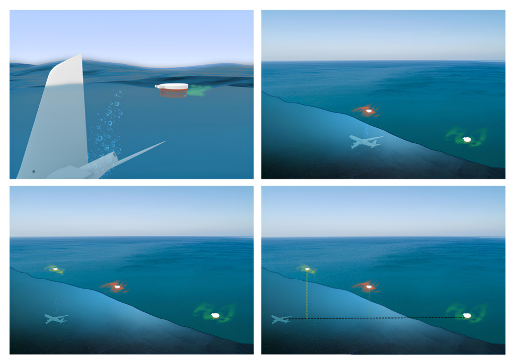 De cette idée naît un dispositif inédit, aujourd’hui breveté, composé de modules autonomes éjectables. Lors d’une immersion accidentelle, ces modules, nommés « Capsules Riff », remontent à la surface et libèrent successivement des composés biodégradables et fluorescents de couleurs différentes. « La première couleur indique l’endroit où l’avion touche l’eau. La deuxième confirme la trajectoire. La troisième montre là où l’épave a terminé sa course. » En un coup d’œil, depuis les airs, même à 4 000 m d’altitude pour un avion de recherche, il devient possible de comprendre la dynamique de l’accident et de cartographier une zone précise.