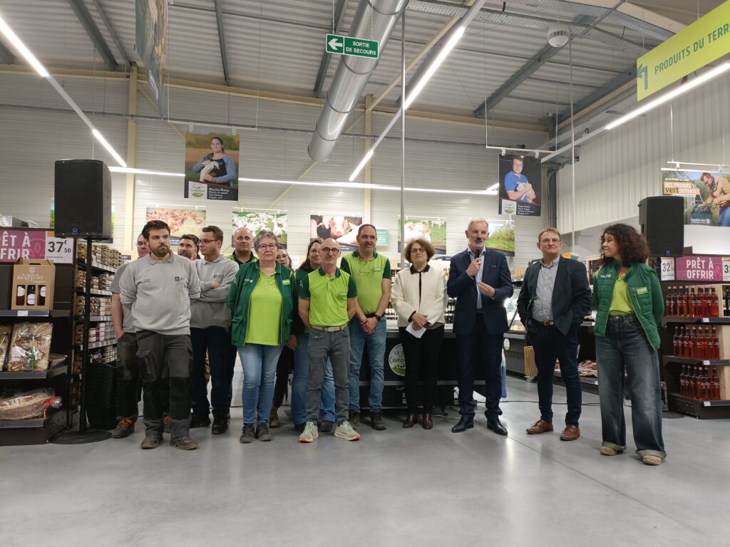 Au total, « 4 millions d’euros ont été investis par le groupe coopératif Terres du Sud », détaillait Eric Comin, Directeur Branche Distribution du groupe Terres du Sud. La surface commerciale passe ainsi de 2 400 à 3 300 m², espaces extérieurs compris. Au-delà de l’agrandissement, le projet s’inscrit dans une logique d’écoconstruction : panneaux photovoltaïques, éclairage LED généralisé, éclairage extérieur solaire et bornes de recharge pour véhicules électriques complètent l’équipement. Pour les équipes comme pour les clients, le changement est tangible.