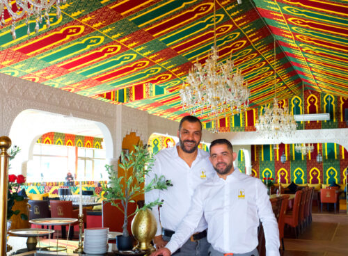 À peine la porte franchie, l’ambiance est posée. Tissus brodés, tentes caïdales, plâtrerie artisanale,...